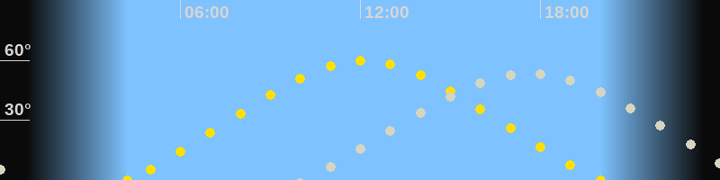 | Höchster Sonnenstand (Kulmination) | 12:07 Uhr (h = 59.8°) |