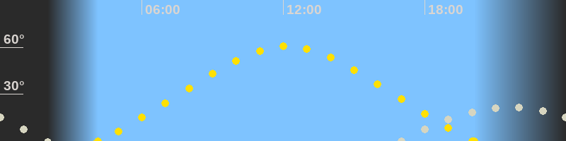 | Höchster Sonnenstand (Kulmination) | 12:07 Uhr (h = 60.7°) |
