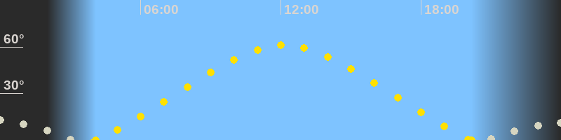 | Höchster Sonnenstand (Kulmination) | 12:07 Uhr (h = 61.1°) |