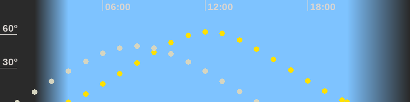 | Höchster Sonnenstand (Kulmination) | 12:09 Uhr (h = 62.3°) |