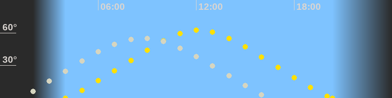 | Höchster Sonnenstand (Kulmination) | 12:10 Uhr (h = 62.4°) |