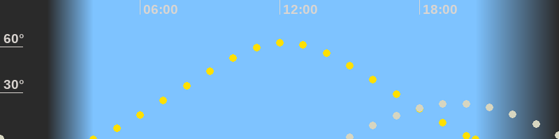 | Höchster Sonnenstand (Kulmination) | 12:12 Uhr (h = 62.7°) |