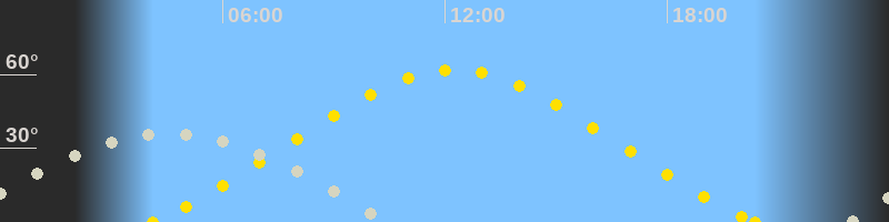| Höchster Sonnenstand (Kulmination) | 12:15 Uhr (h = 62°) |