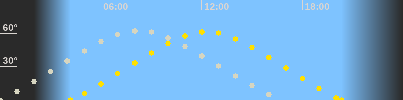 | Höchster Sonnenstand (Kulmination) | 12:15 Uhr (h = 61.4°) |