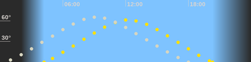 | Höchster Sonnenstand (Kulmination) | 12:15 Uhr (h = 61.3°) |