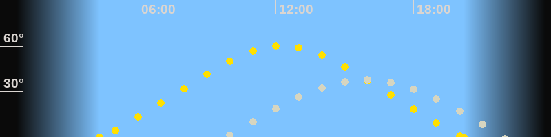 | Höchster Sonnenstand (Kulmination) | 12:16 Uhr (h = 60.2°) |