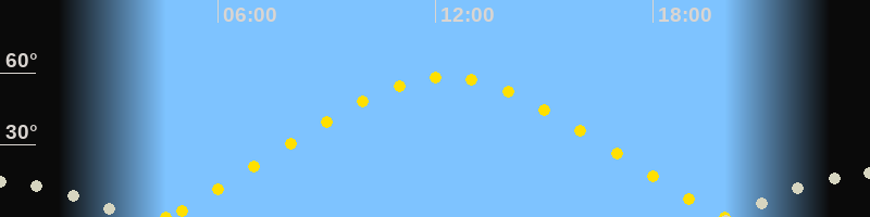 | Höchster Sonnenstand (Kulmination) | 12:16 Uhr (h = 58.1°) |
