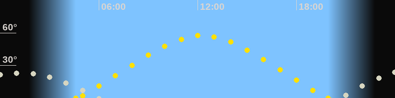 | Höchster Sonnenstand (Kulmination) | 12:16 Uhr (h = 57.6°) |