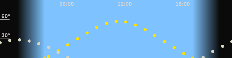 | Höchster Sonnenstand (Kulmination) | 12:16 Uhr (h = 57.3°) |