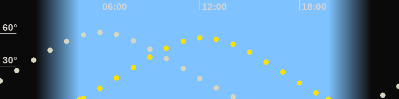 | Höchster Stand (Kulmination) | 05:59 Uhr (h=60.6°) |
