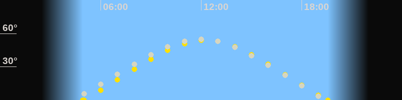 | Höchster Sonnenstand (Kulmination) | 12:15 Uhr (h = 54°) |