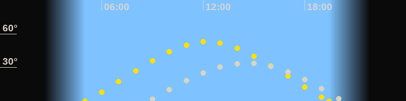 | Sonnenaufgang | 05:00 Uhr im Nordosten (αAz = 66.9°) |