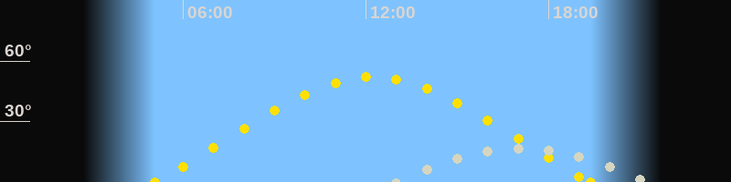 | Sonnenaufgang | 05:04 Uhr im Osten (αAz = 68.5°) |