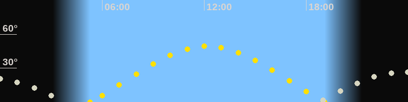 | Sonnenaufgang | 05:16 Uhr im Osten (αAz = 72.9°) |
