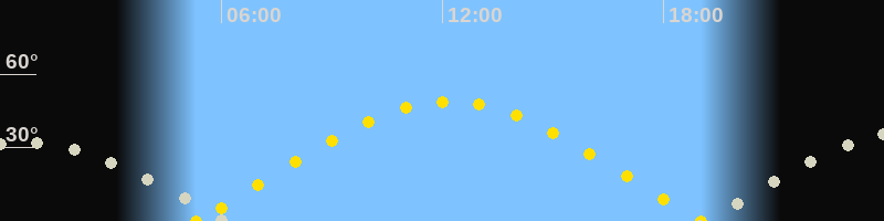 | Sonnenaufgang | 05:19 Uhr im Osten (αAz = 74.1°) |