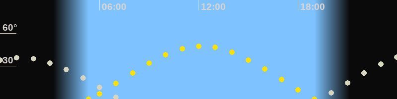 | Sonnenaufgang | 05:21 Uhr im Osten (αAz = 74.6°) |