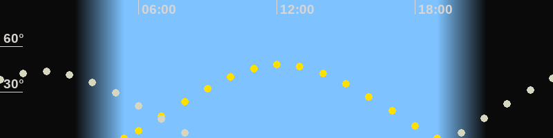| Höchster Sonnenstand (Kulmination) | 12:10 Uhr (h = 48°) |