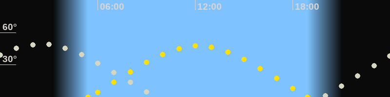 | Sonnenaufgang | 05:24 Uhr im Osten (αAz = 75.8°) |