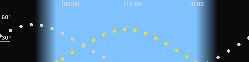 | Sonnenaufgang | 05:26 Uhr im Osten (αAz = 76.4°) |