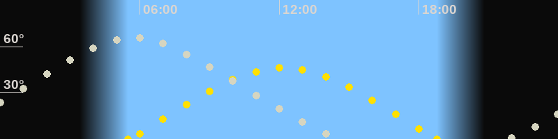 Sonnenaufgang05:30 Uhr im Osten (αAz = 78.1°)