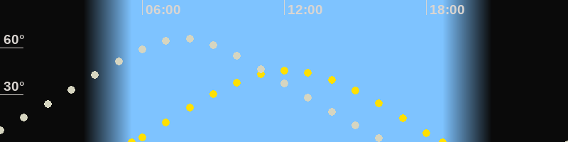 | Sonnenaufgang | 05:33 Uhr im Osten (αAz = 79.3°) |