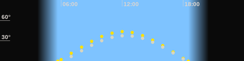 | Sonnenuntergang | 18:30 Uhr im Westen (αAz = 277.3°) |