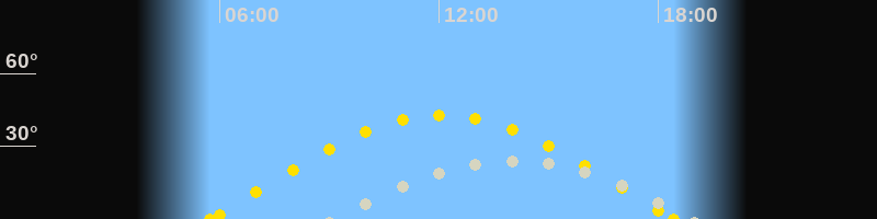 | Höchster Sonnenstand (Kulmination) | 12:06 Uhr (h = 42.8°) |