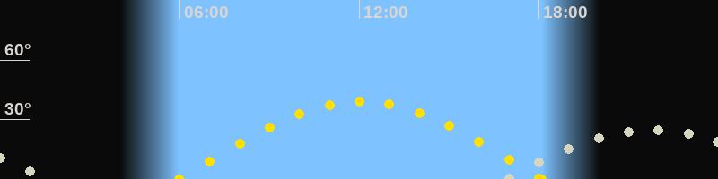 | Sonnenuntergang | 18:05 Uhr im Westen (αAz = 270.6°) |