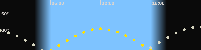 | Höchster Sonnenstand (Kulmination) | 12:01 Uhr (h = 38.1°) |