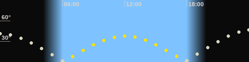 | Sonnenaufgang | 06:04 Uhr im Osten (αAz = 91.5°) |