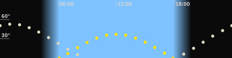 Mondaufgang18:10 Uhr im Nordosten (αAz = 62.2°)