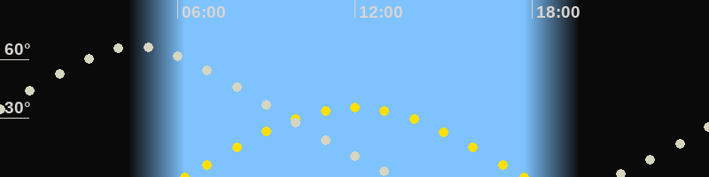 | Sonnenaufgang | 06:14 Uhr im Osten (αAz = 95.2°) |