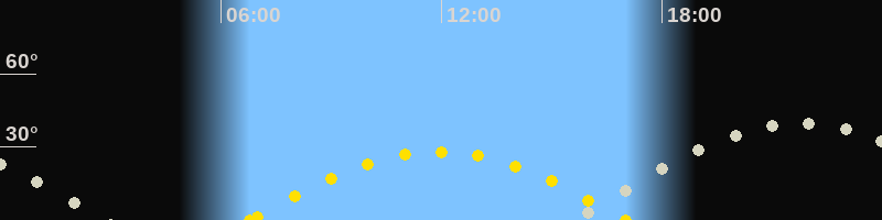 | Höchster Sonnenstand (Kulmination) | 11:54 Uhr (h = 28°) |
