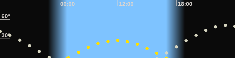 | Höchster Sonnenstand (Kulmination) | 11:54 Uhr (h = 27.3°) |
