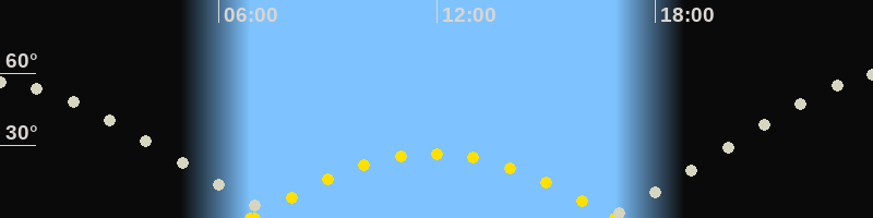 | Höchster Sonnenstand (Kulmination) | 11:54 Uhr (h = 26.6°) |