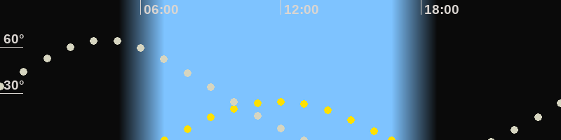 | Höchster Sonnenstand (Kulmination) | 11:53 Uhr (h = 24.9°) |