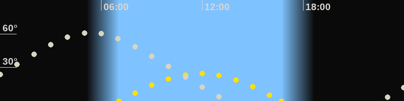 | Höchster Sonnenstand (Kulmination) | 11:53 Uhr (h = 24.6°) |