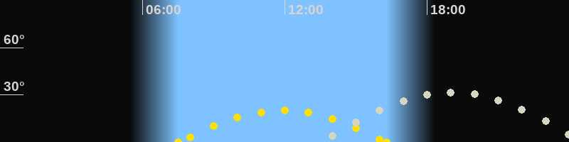 | Sonnenaufgang | 07:30 Uhr im Südosten (αAz = 120.3°) |