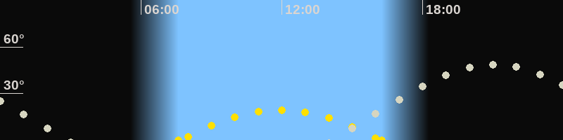 | Höchster Sonnenstand (Kulmination) | 11:55 Uhr (h = 19.4°) |