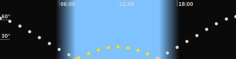 | Höchster Sonnenstand (Kulmination) | 11:57 Uhr (h = 18.6°) |