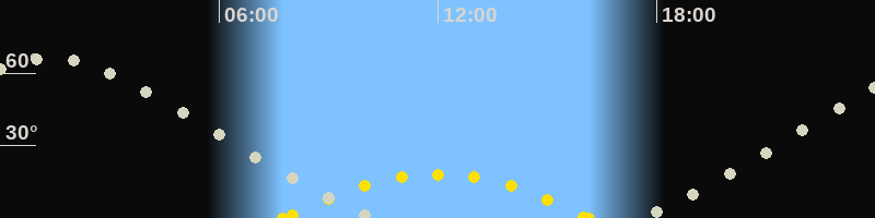 | Höchster Sonnenstand (Kulmination) | 11:57 Uhr (h = 18.2°) |