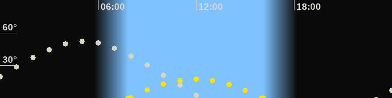 | Höchster Sonnenstand (Kulmination) | 11:59 Uhr (h = 17.5°) |