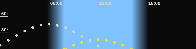 | Höchster Sonnenstand (Kulmination) | 11:59 Uhr (h = 17.4°) |