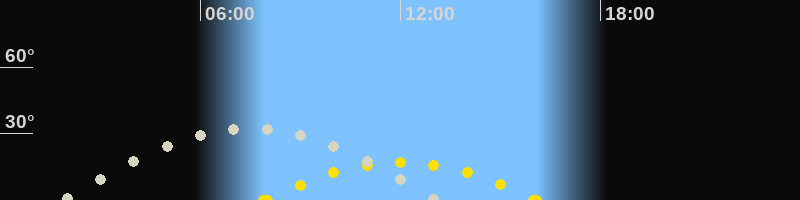 | Höchster Sonnenstand (Kulmination) | 12:00 Uhr (h = 17.1°) |