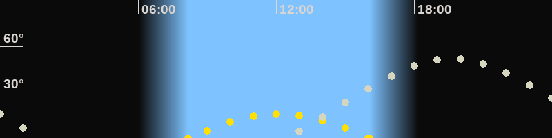 | Höchster Sonnenstand (Kulmination) | 12:07 Uhr (h = 15.9°) |