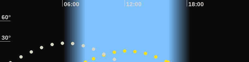 | Höchster Stand (Kulmination) | 06:21 Uhr (h=27.9°) |