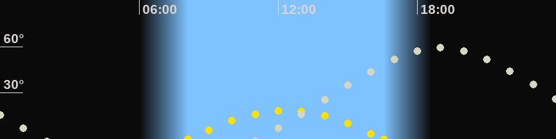 | Höchster Sonnenstand (Kulmination) | 12:19 Uhr (h = 18.4°) |