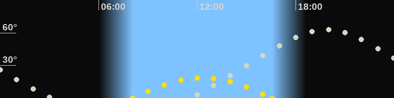 | Höchster Sonnenstand (Kulmination) | 12:20 Uhr (h = 18.6°) |
