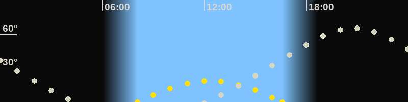 | Höchster Sonnenstand (Kulmination) | 12:20 Uhr (h = 18.8°) |