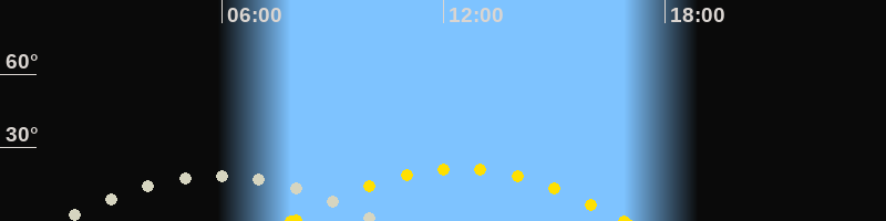 | Höchster Sonnenstand (Kulmination) | 12:23 Uhr (h = 21.5°) |